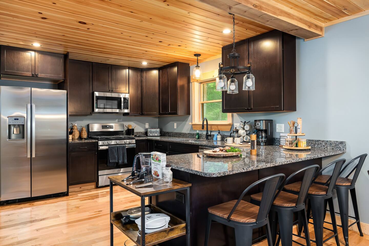 Twin Lakes Chalet features amenities to create lasting memories. Ease into the private hot tub as you take in the crisp mountain air or gather 'round the fire pit to share stories and roast marshmallows under the stars. The outdoor all-season dome offers a cozy space to connect with loved ones, whatever the weather. The fun continues with an LED-lit arcade room, Xbox for gaming, and a wet bar to craft your favorite drinks. Start your day with a delicious hand-crafted waffle from our waffle bar!