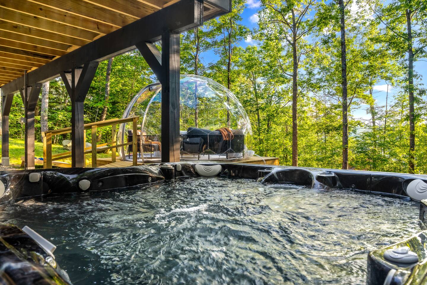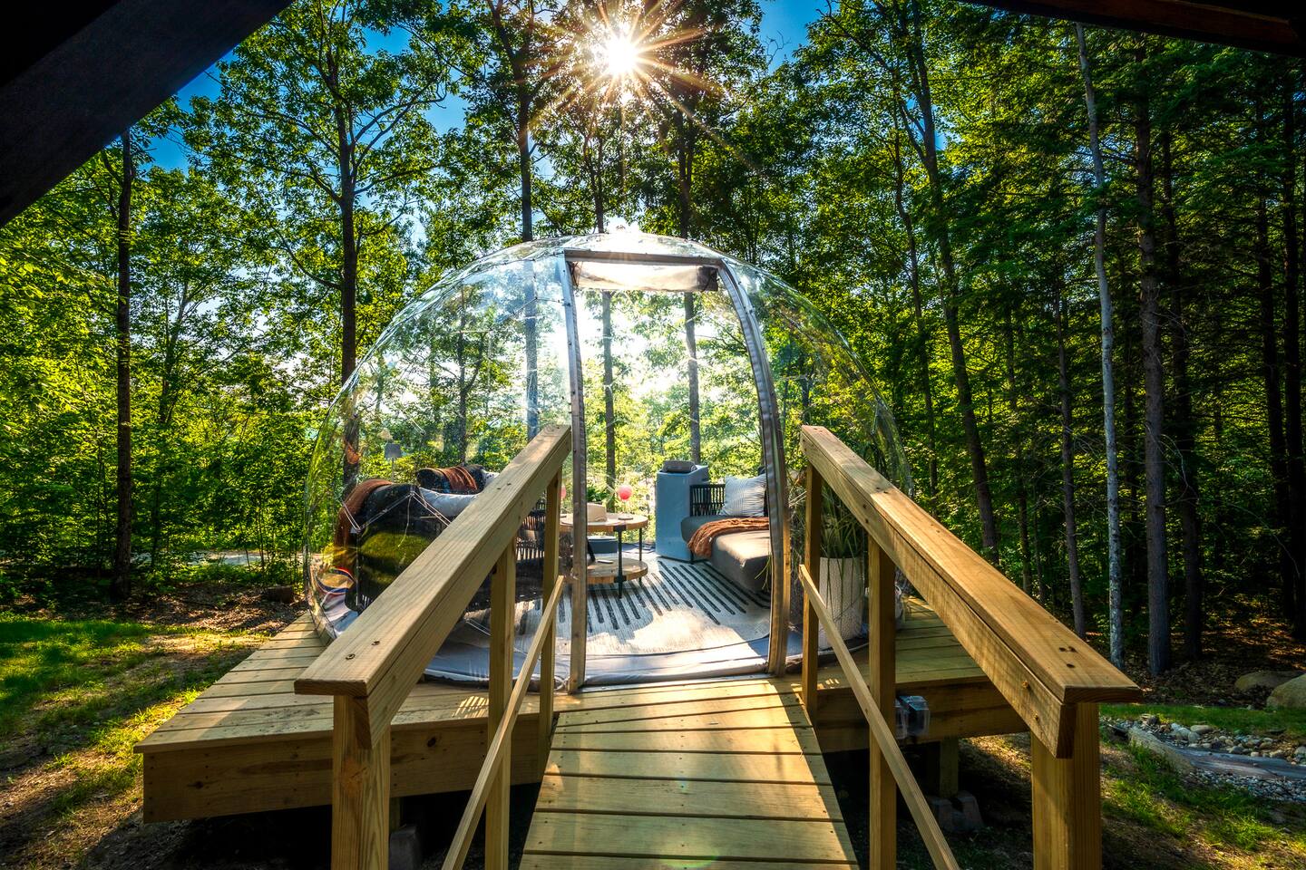 Experience the joy of bringing indoor living outside in our cozy, all-season outdoor dome. With stunning views, enjoy drinks with friends, play games, or groove to music on the Bluetooth speaker. Views and a tranquil vibe complete this unforgettable escape.