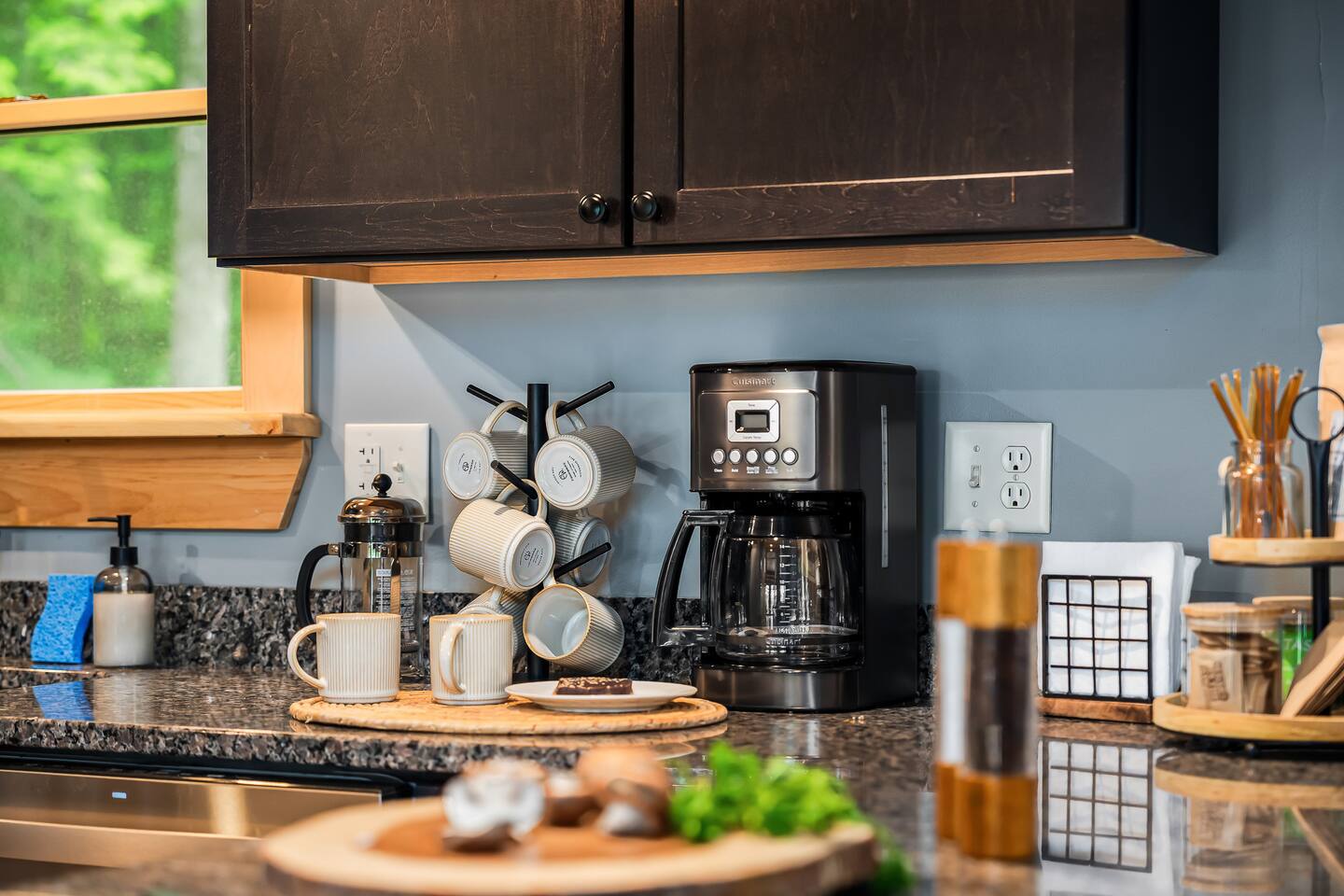 The kitchen is a haven for chefs, equipped with sleek stainless-steel appliances. Pull up one of the four barstools to chat while meals are created, or settle around the dining table that comfortably seats six, making it the perfect setting for memorable moments over food and conversation. Begin your mornings at the waffle bar, stocked with three waffle makers, including one that crafts fun 3D car-shaped waffles. Create your custom waffles and top them with fresh Maine maple syrup for a delightful breakfast experience. Complimentary waffle mix, requiring just water, ensures your mornings are both simple and delicious. Designed with families and food lovers in mind, this space is as fun as it is practical!